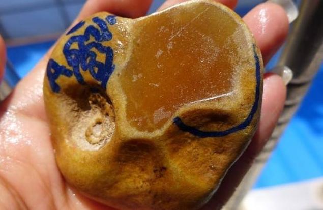 还有一些水石翡翠毛料。比如大马坎,它的皮壳特别的光滑,摸着滑不溜秋的,很多朋友把外部那层当做是皮壳了,其实那是一层雾,它们的皮壳在经过水流和泥沙的冲洗已经没有了,经过磨蚀后造成的结果只留下一层雾,所以说不是水石翡翠毛料没有皮壳或者没有雾,只是雾和皮已经同化了。